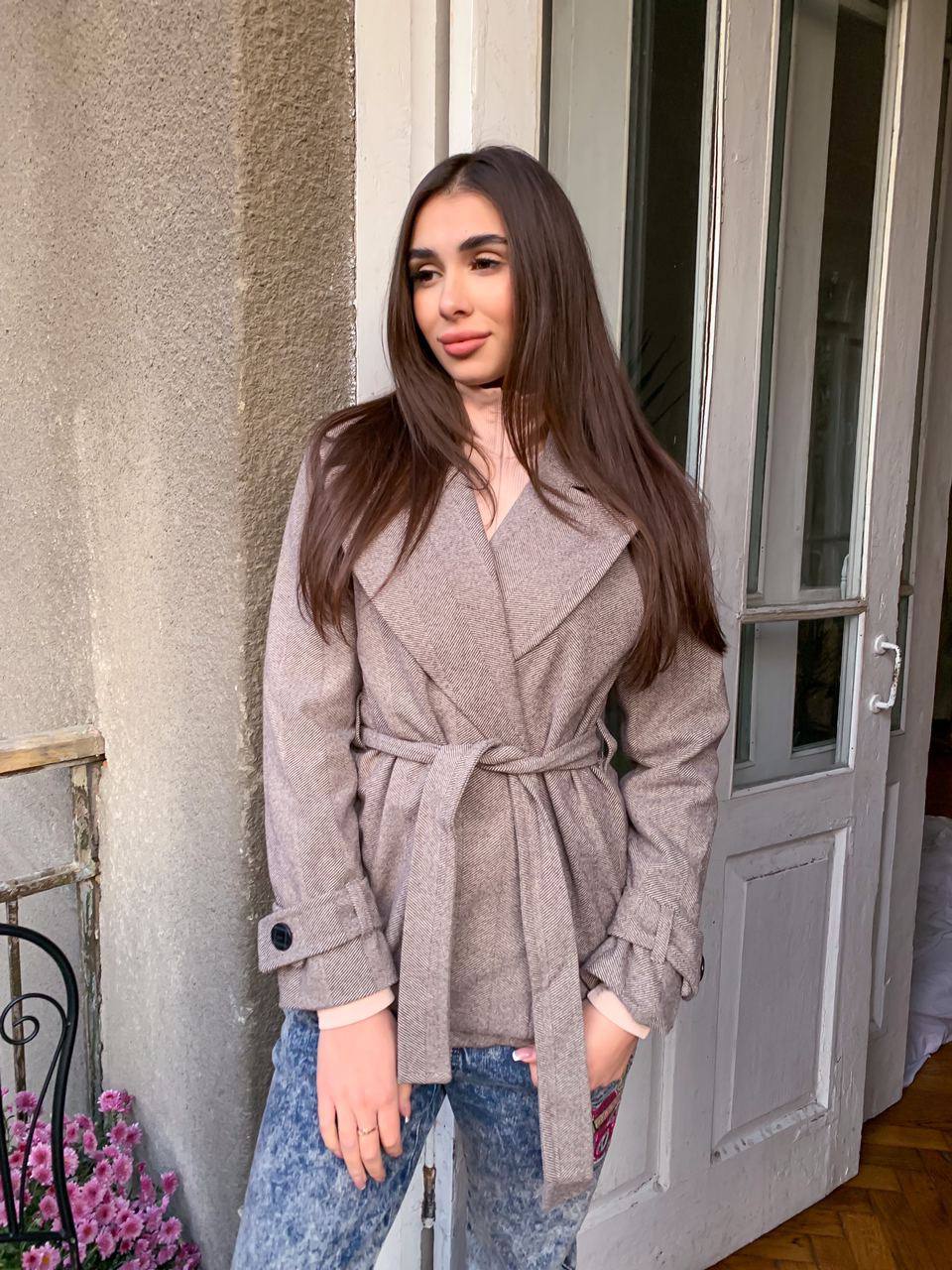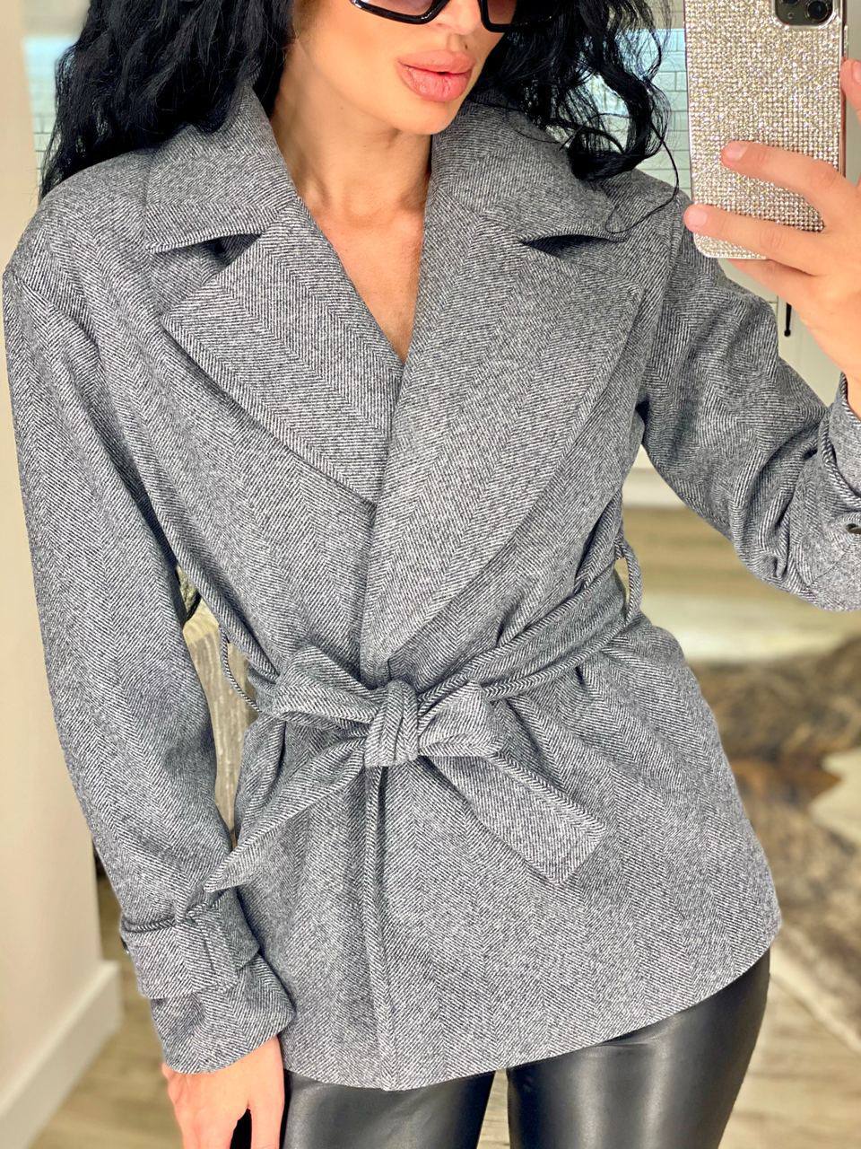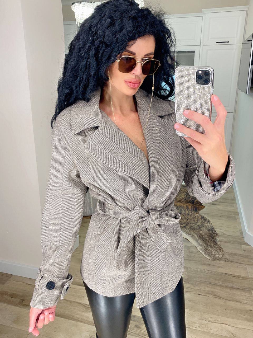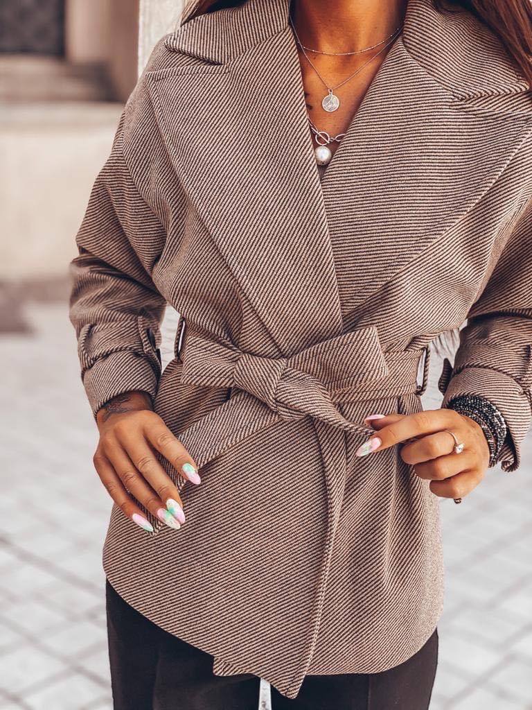 Елегантне напівпальто на підкладці з поясом із дрібним діагональним принтом - ідеальний вибір для стильних і сучасних образів. Має широкий відкладний комір та пояс у тон, який красиво підкреслює талію. Приталений крій формує елегантний силует, а підкладка забезпечує комфорт і якісну посадку. Підійде для прогулянок чи зустрічей, легко поєднується з брюками, джинсами або спідницею.