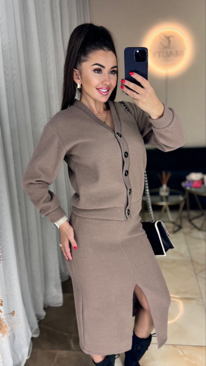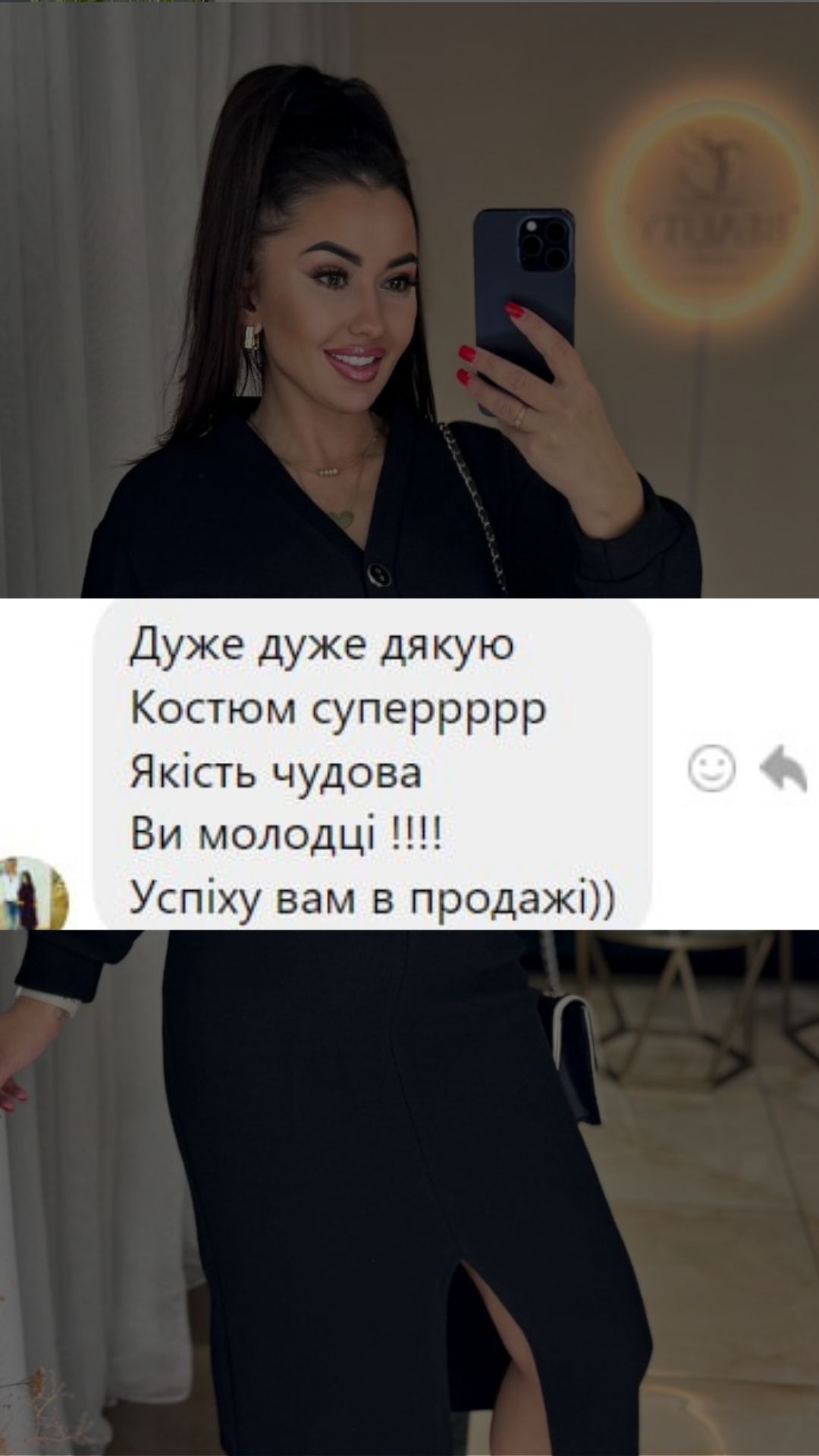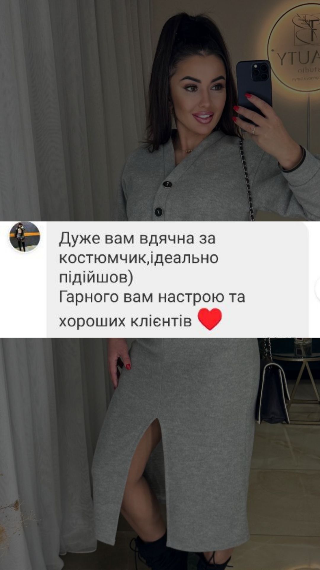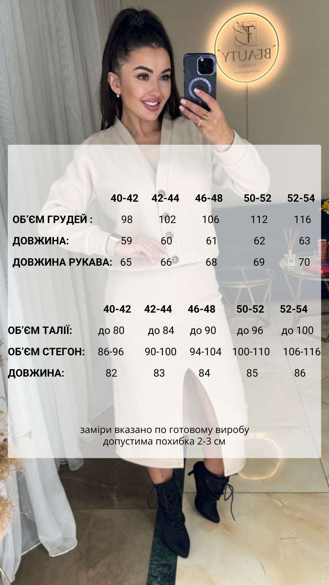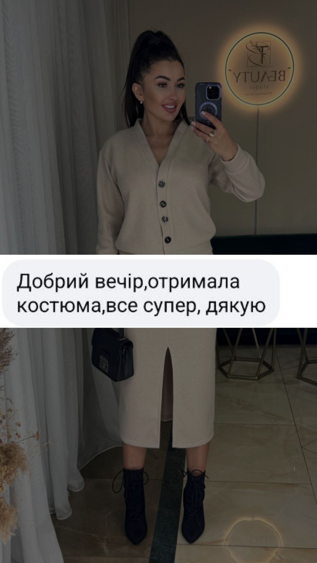 Неймовірний костюм кардиган+спідниця. Поєднання стилю, жіночності та елегантності. Кардиган на гудзиках, спідниця на резинці, спереду розріз.