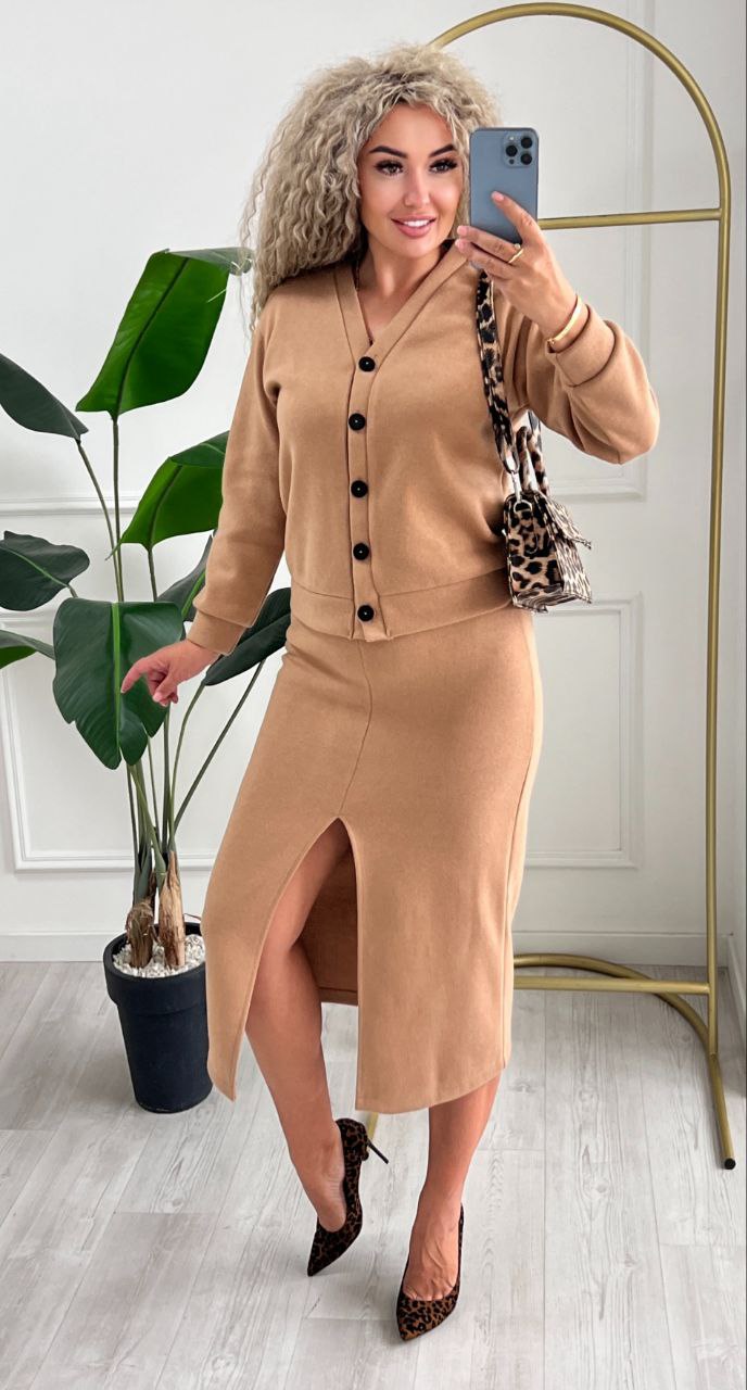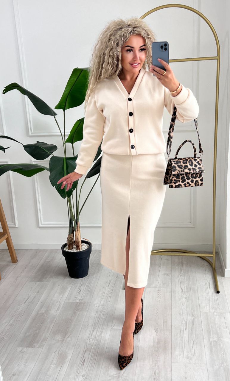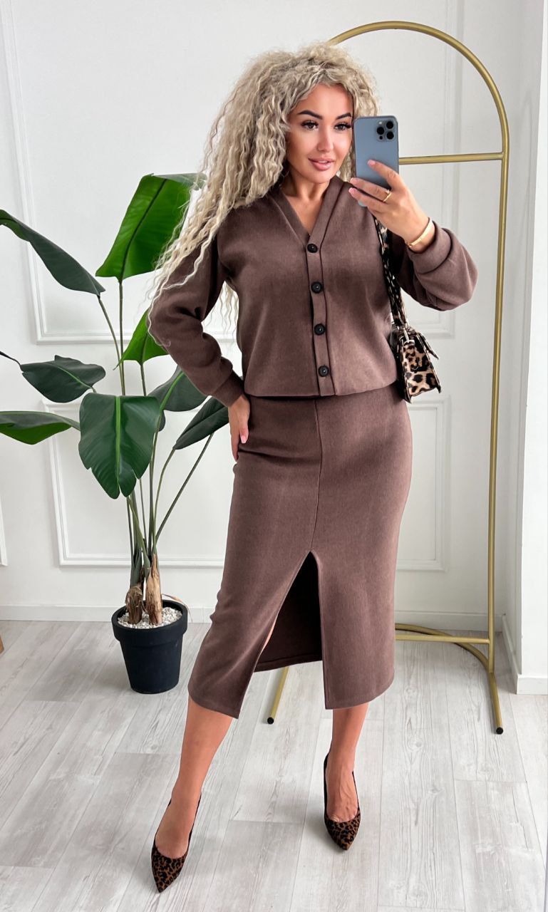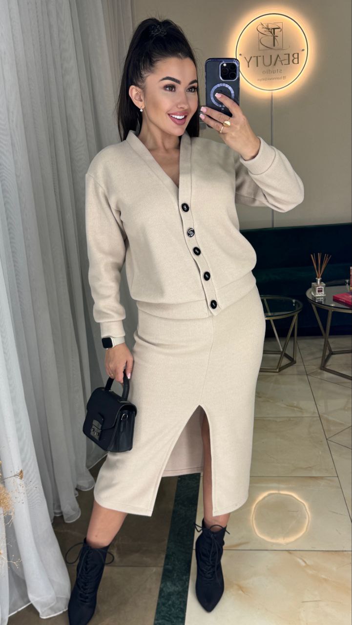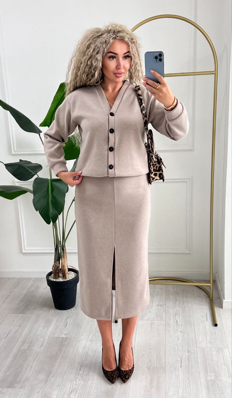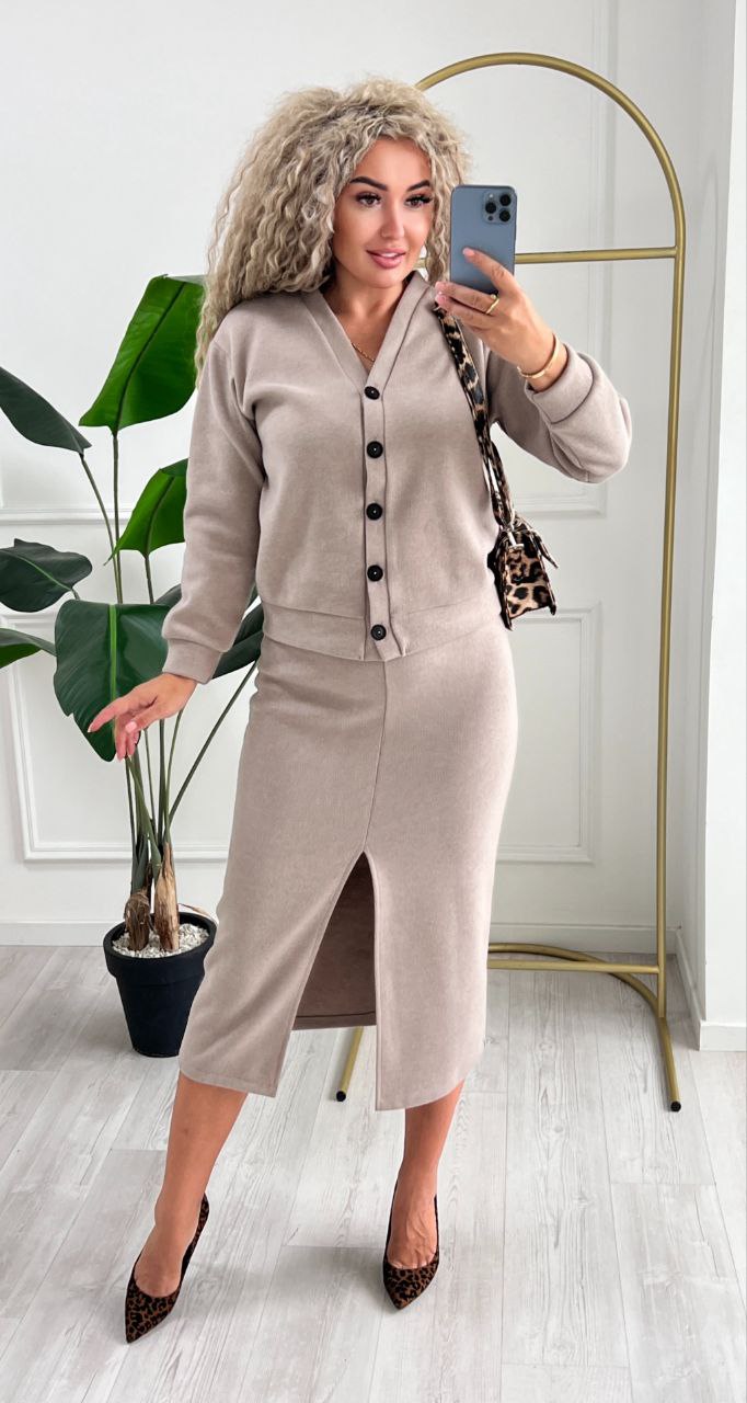 Неймовірний костюм кардиган+спідниця. Поєднання стилю, жіночності та елегантності. Кардиган на гудзиках, спідниця на резинці, спереду розріз.