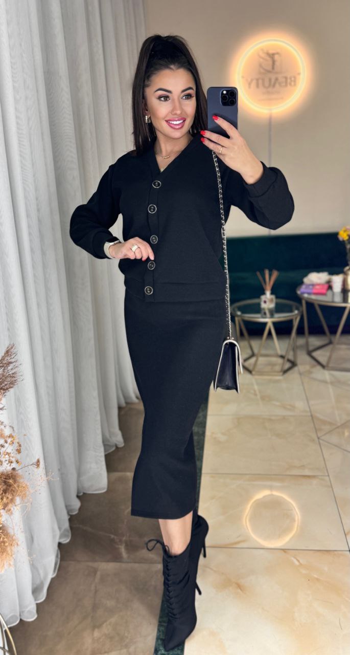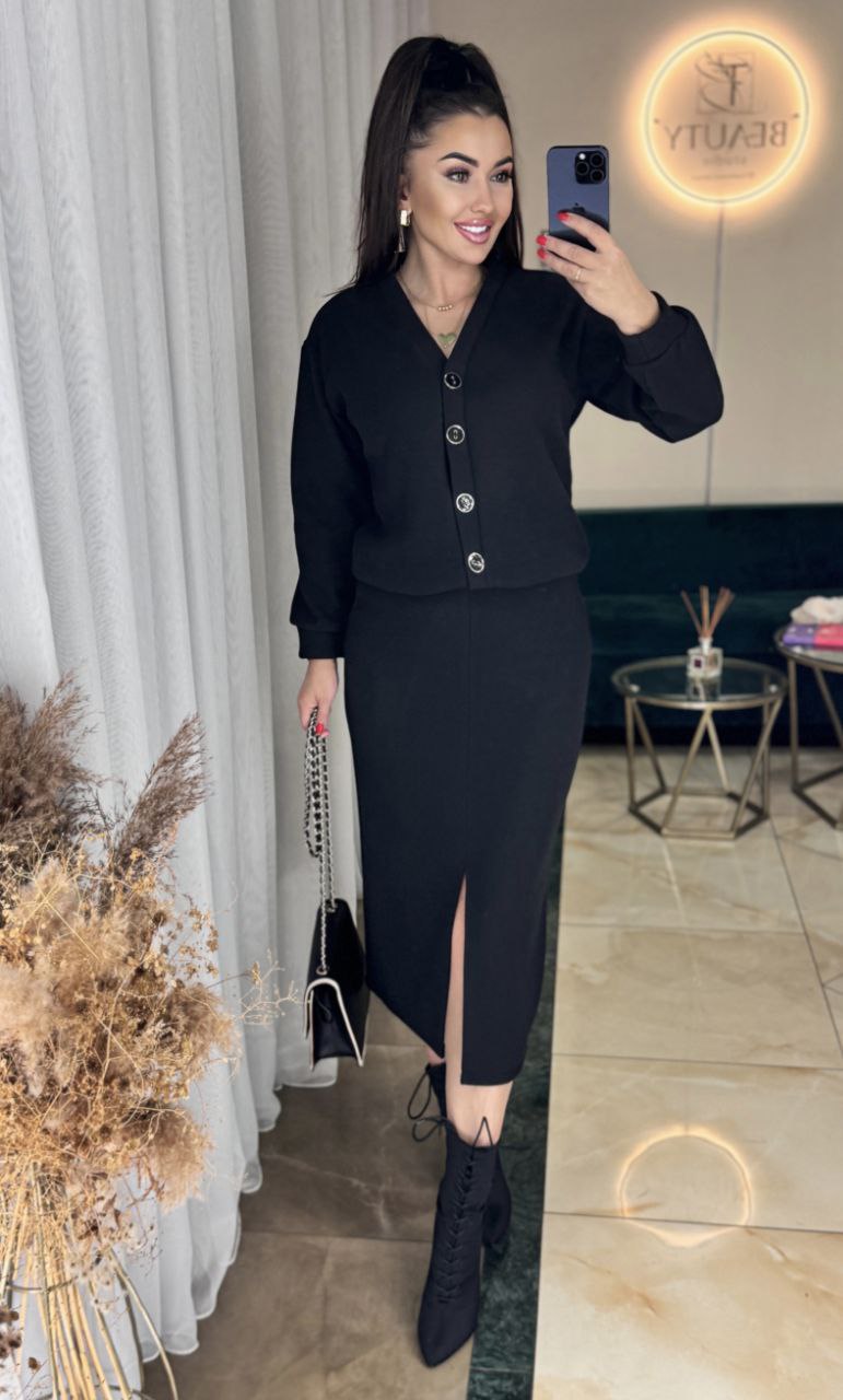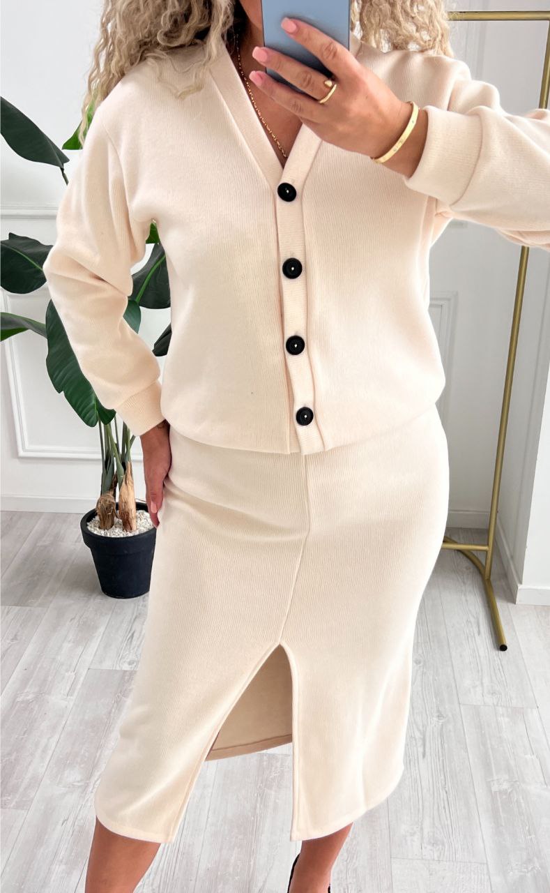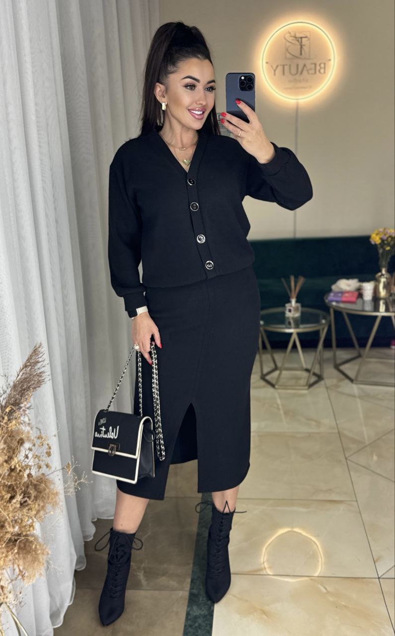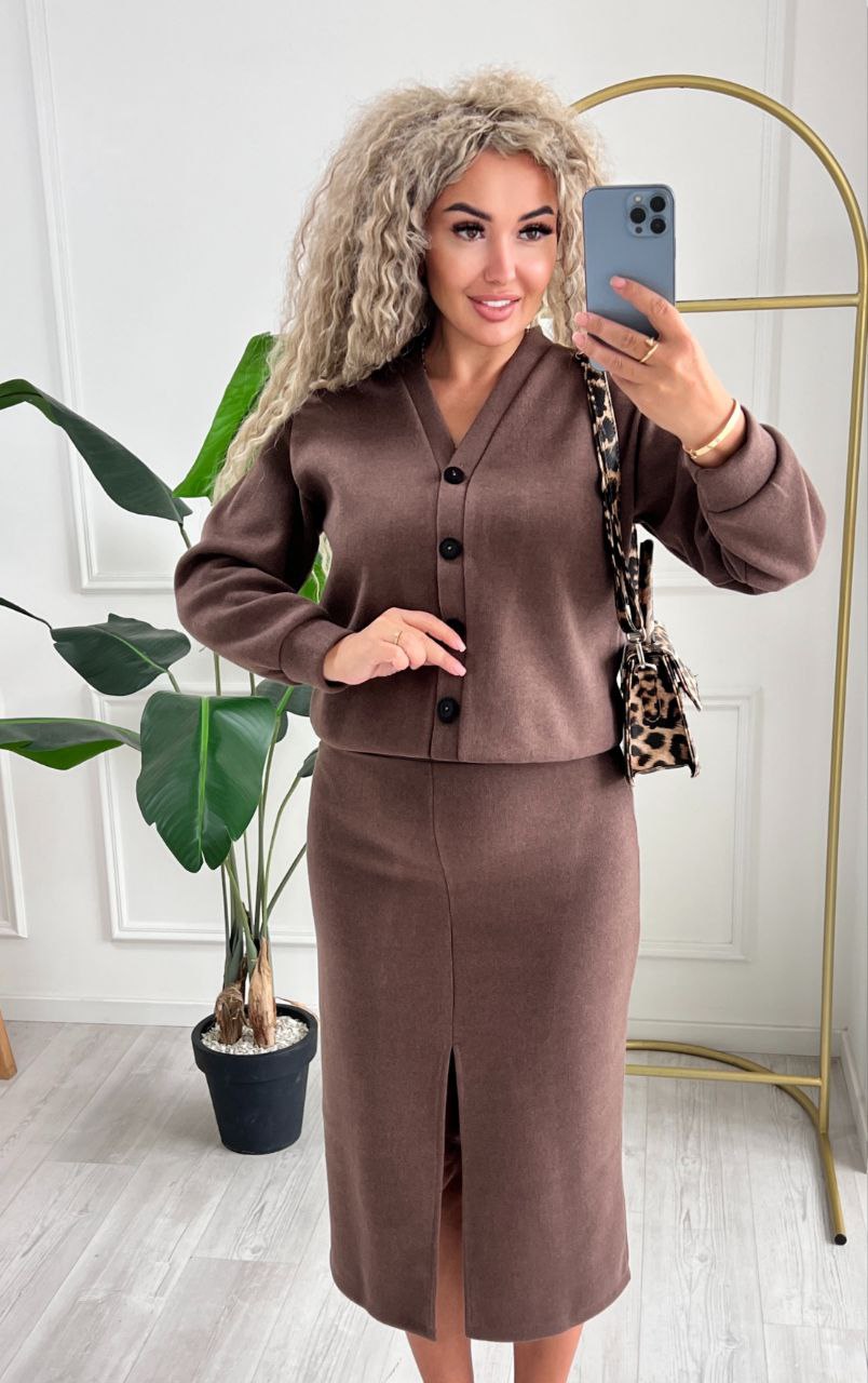 Неймовірний костюм кардиган+спідниця. Поєднання стилю, жіночності та елегантності. Кардиган на гудзиках, спідниця на резинці, спереду розріз.