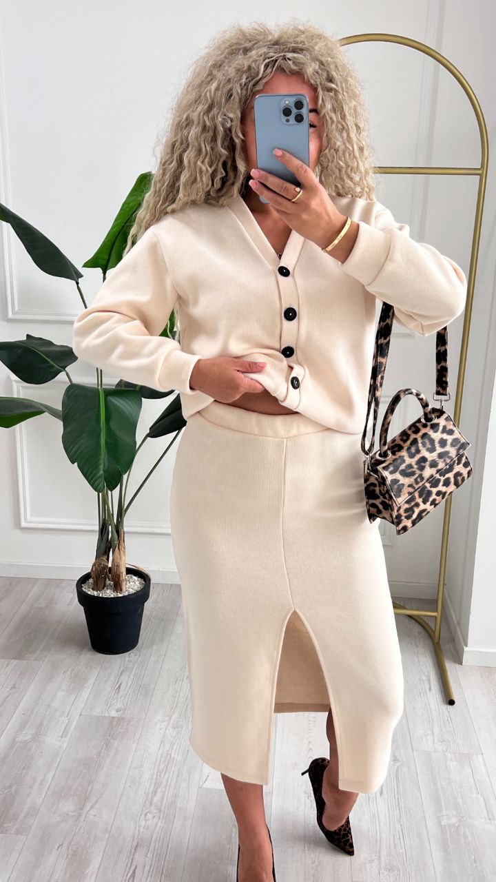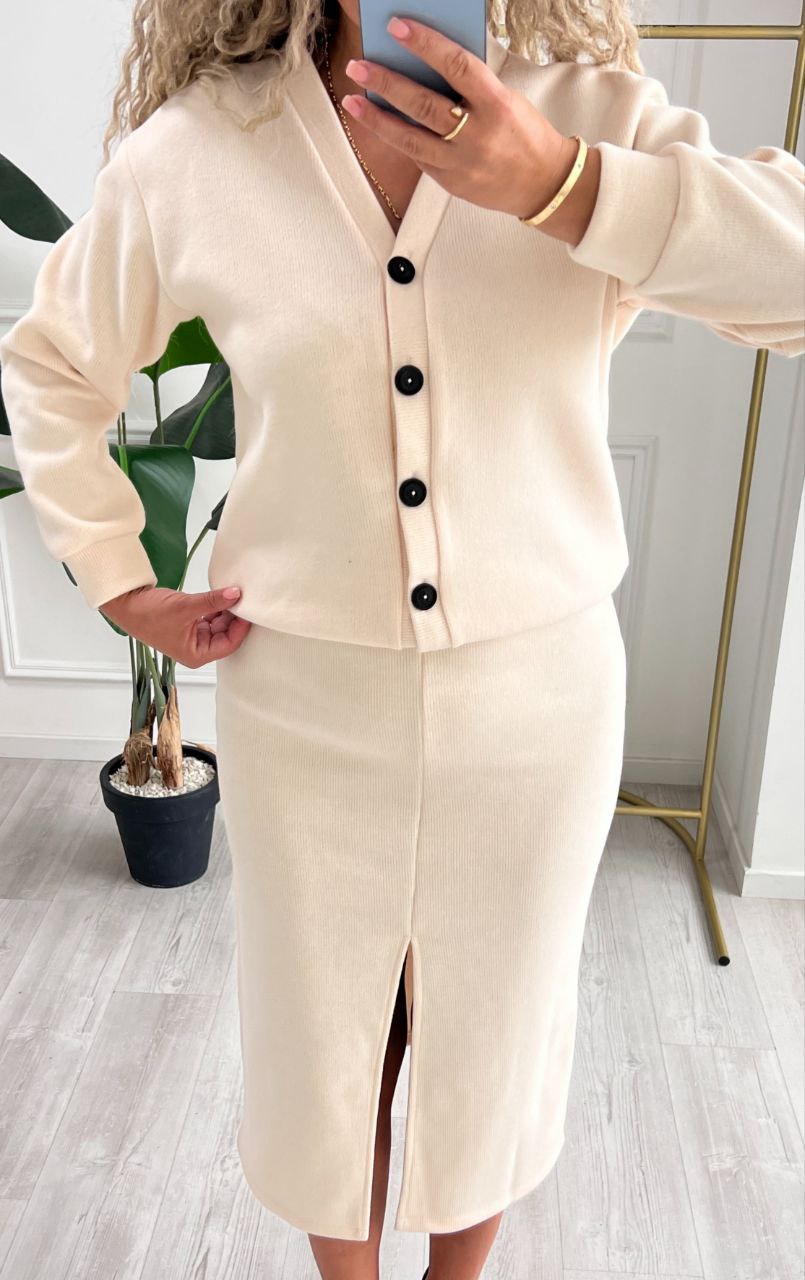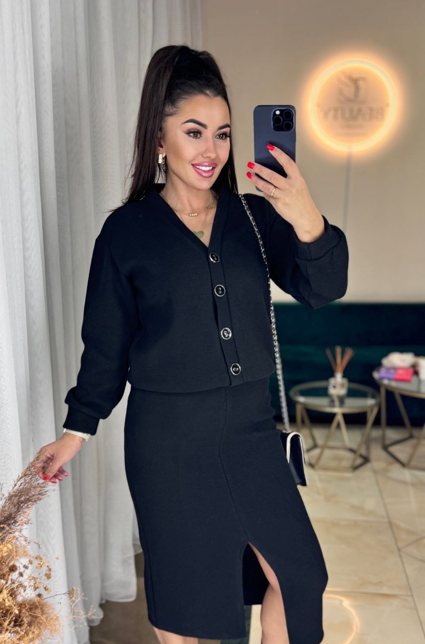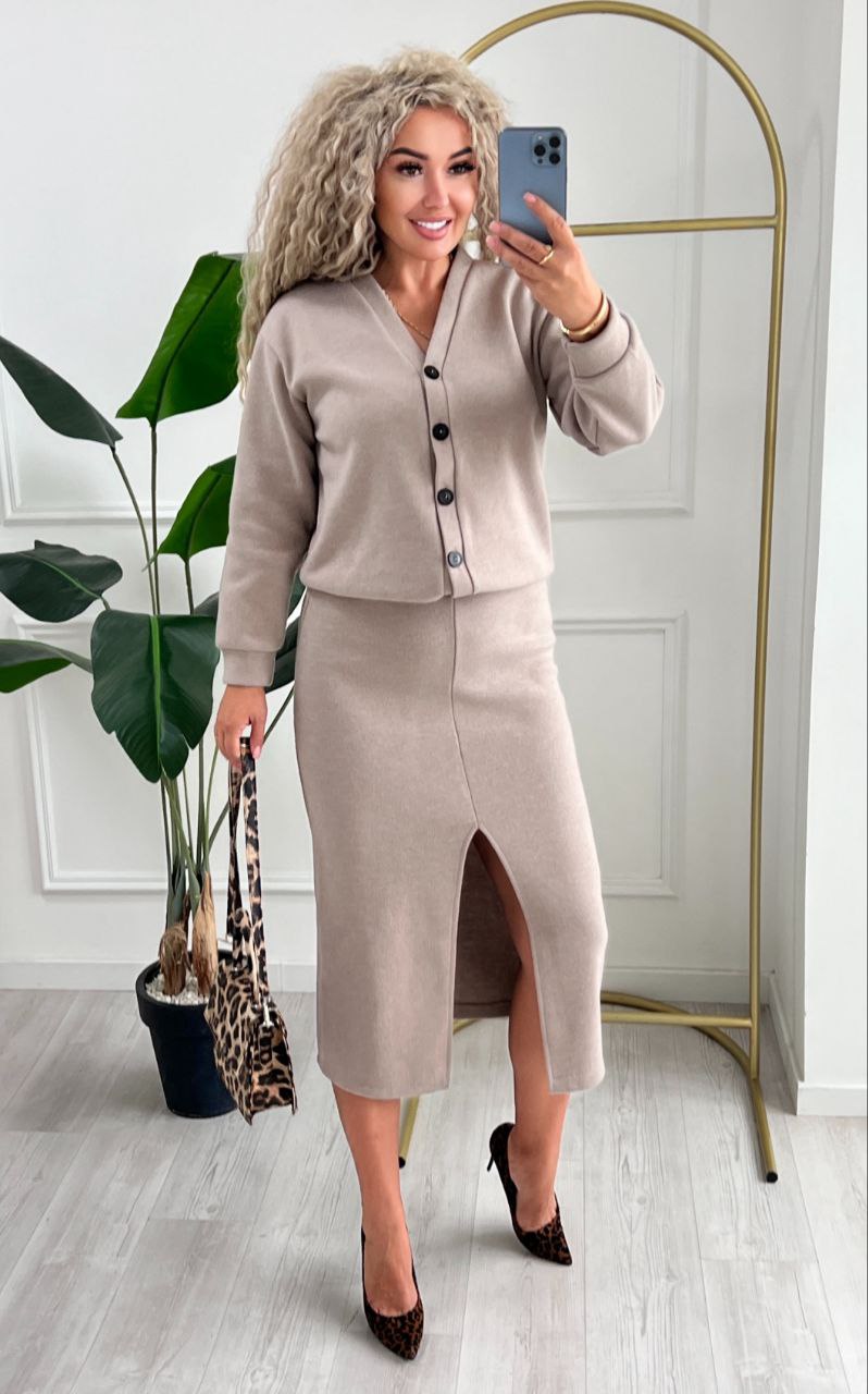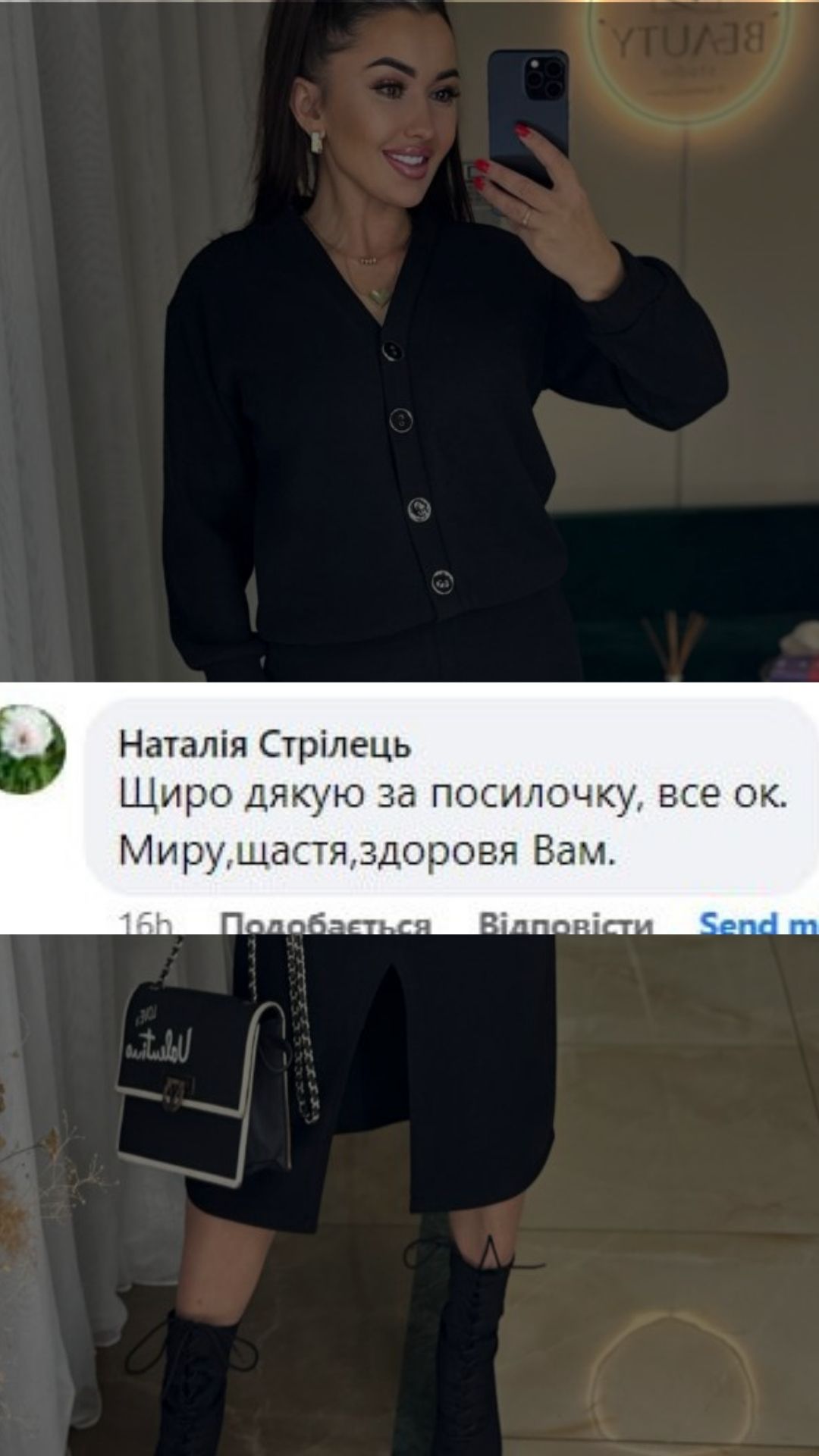 Неймовірний костюм кардиган+спідниця. Поєднання стилю, жіночності та елегантності. Кардиган на гудзиках, спідниця на резинці, спереду розріз.
