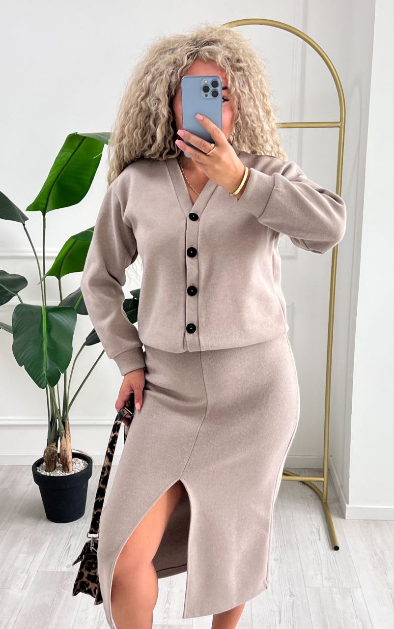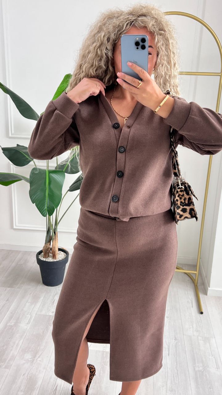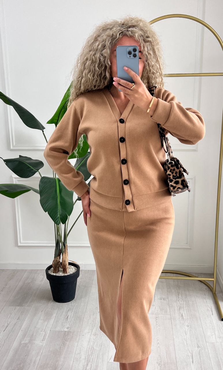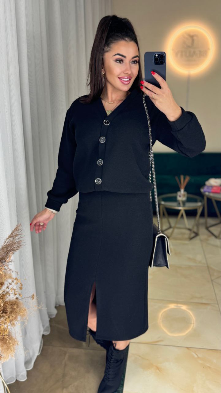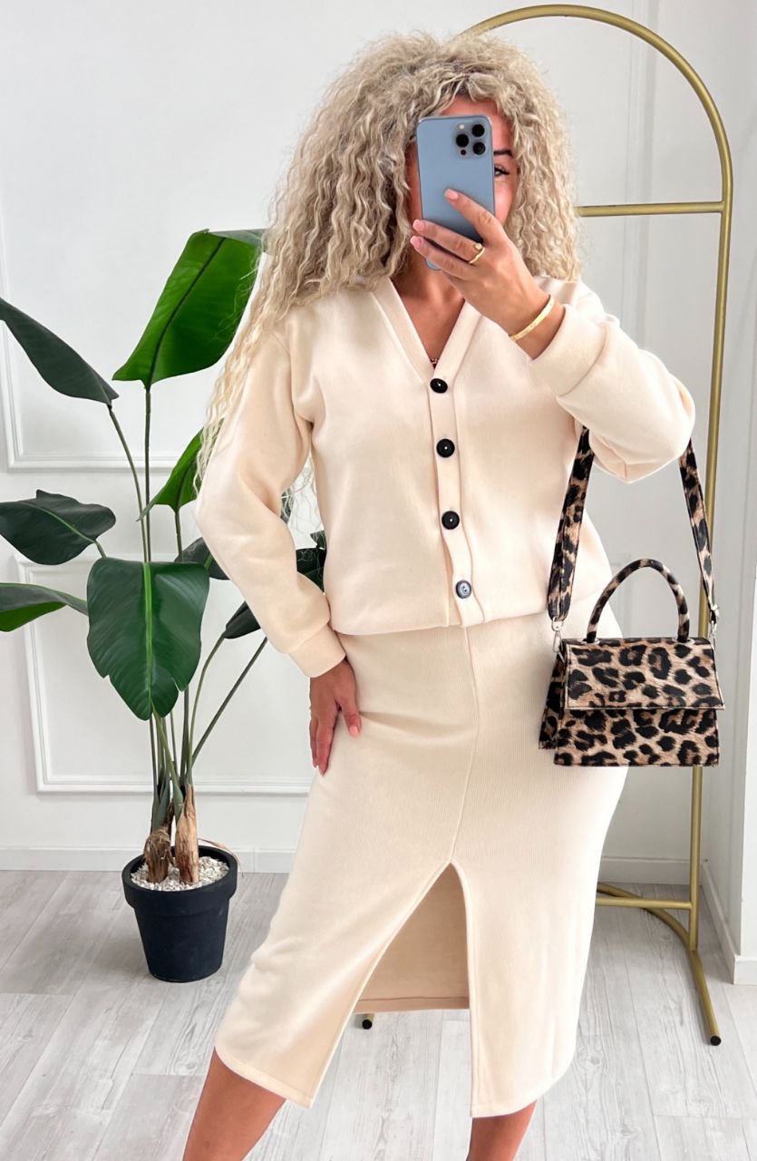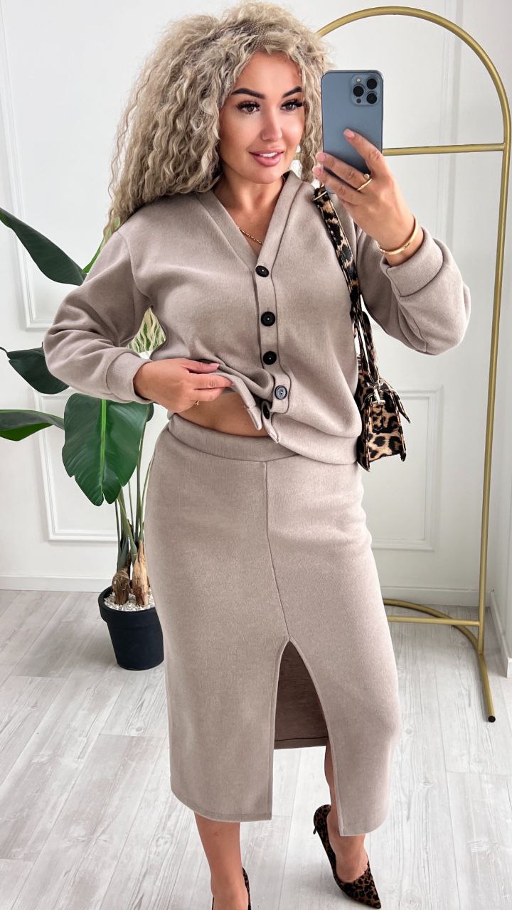 Неймовірний костюм кардиган+спідниця. Поєднання стилю, жіночності та елегантності. Кардиган на гудзиках, спідниця на резинці, спереду розріз.